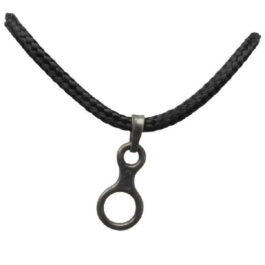 Kette bestehend aus Textilband mit Anhänger aus Silber.