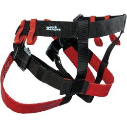 Ungepolsteter Speleo-Sitzgurt. Das Bandmaterial ist durch eine Beschichtung gegen Abrieb geschützt. Mit vier Materialschlaufen (bis 5 kg belastbar) sowie drei Schnellverstellschnallen.