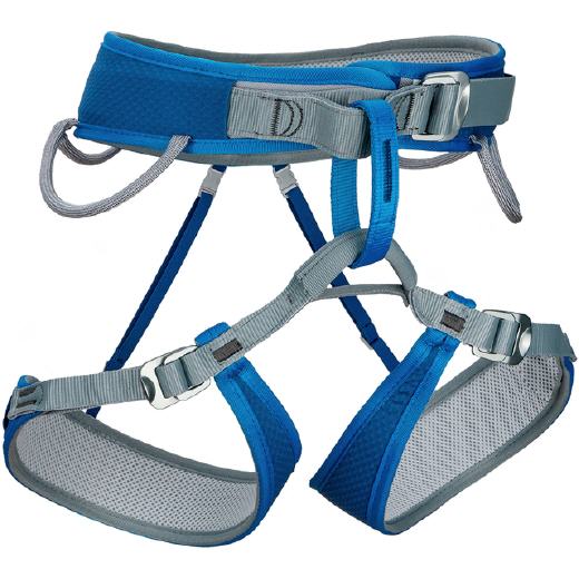 Voll verstellbar mit drei 20 mm Schnellverstellschnallen. Das Hüftband benötigt nur eine Schnalle, weil es frei im Hüftpolster verläuft und sich der Gurt somit automatisch richtig zentriert. Konisch geformte Beinschlaufen für hohen Tragekomfort. Ausgestattet mit 3D-Polsterung, einer Schlaufe zum Befestigen eines Materialkarabiners (wie z.B. dem R.E. Plastic Helper) und vier Materialschlaufen, die maximal bis 5 kg belastet werden können. Farblich abgesetzte Anseilschlaufe (12 mm, 15 kN).