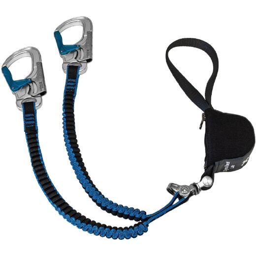 Die Karabiner haben eine Handballensicherung und öffnen sich nur, wenn man mit der Handfläche gegen den Hebelmechanismus drückt. Geschieht dies nicht ist der Karabiner verriegelt. Dies ist eine sehr einfache und schnelle Methode um die Sicherungsschlingen umzuhängen.