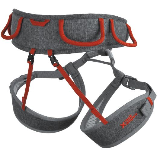 Sein Hauptvorteil ist der verstellbareHüftgurt, dank dem der Sitzgurt genau zentriert und perfekt eingestellt werden kann. So hat der Kletterer beispielsweise immer die Schlaufen für die Ausrüstung in der idealen Position.